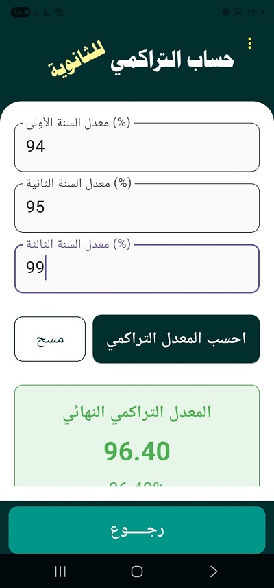 يتم حساب التراكمي والنسبة الموزونة في هذا التطبيق ؟