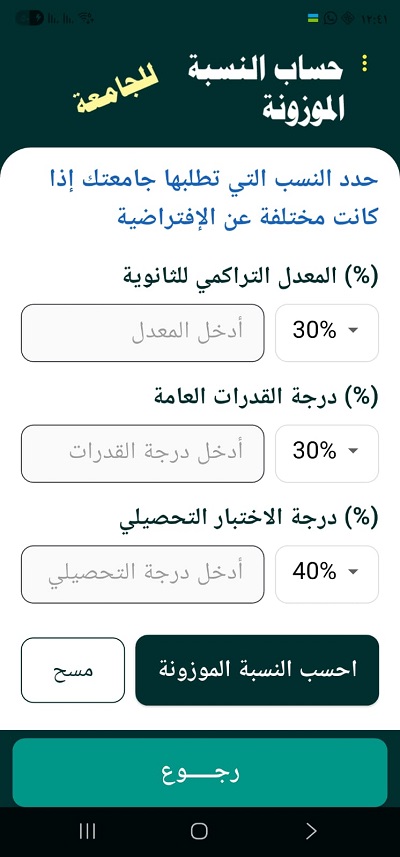 الخيارات لمعرفة النسبة الموزونة المناسبة لأي جامعة