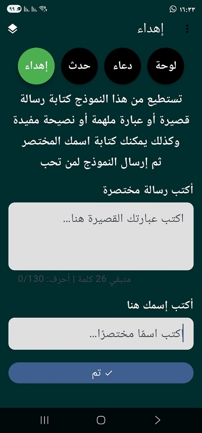 وخفيف لطيف لإرسال بطاقات الحكم والأدعية والعبارات الملهمة وبروزة