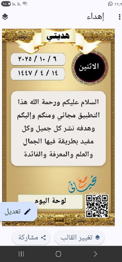 حيث تكون البطاقة الجميلة مضمنة تاريخ اليوم الهجري والميلادي ويمكن